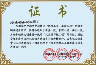 國家電力調度中心"雙文明樣板工程共建活動先進集體"