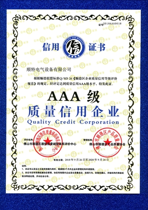 企業(yè)質(zhì)量信用等級(jí)評(píng)價(jià)是為貫徹執(zhí)行國家質(zhì)量信用體系建設(shè)的精神,對(duì)企業(yè)質(zhì)量信用進(jìn)行的評(píng)價(jià)。評(píng)價(jià)每二年復(fù)評(píng)一次,至今我司已經(jīng)連續(xù)獲得二次“質(zhì)量信用A級(jí)企業(yè)”稱號(hào),二次“質(zhì)量信用AAA級(jí)企業(yè)”稱號(hào)。2018年,企業(yè)質(zhì)量信用等級(jí)評(píng)價(jià)按照新版《Q/SD26-2015順德區(qū)企業(yè)質(zhì)量信用等級(jí)評(píng)價(jià)規(guī)范》的規(guī)定進(jìn)行評(píng)審,其中評(píng)價(jià)等級(jí)的劃分依據(jù)《GB/T22116-2008企業(yè)信用等級(jí)表示方法》分為A、B、C、D四級(jí),其中A級(jí)又細(xì)分為AAA、AA和A三級(jí)。今年的評(píng)價(jià)增加了對(duì)A級(jí)的細(xì)分級(jí)別評(píng)審。