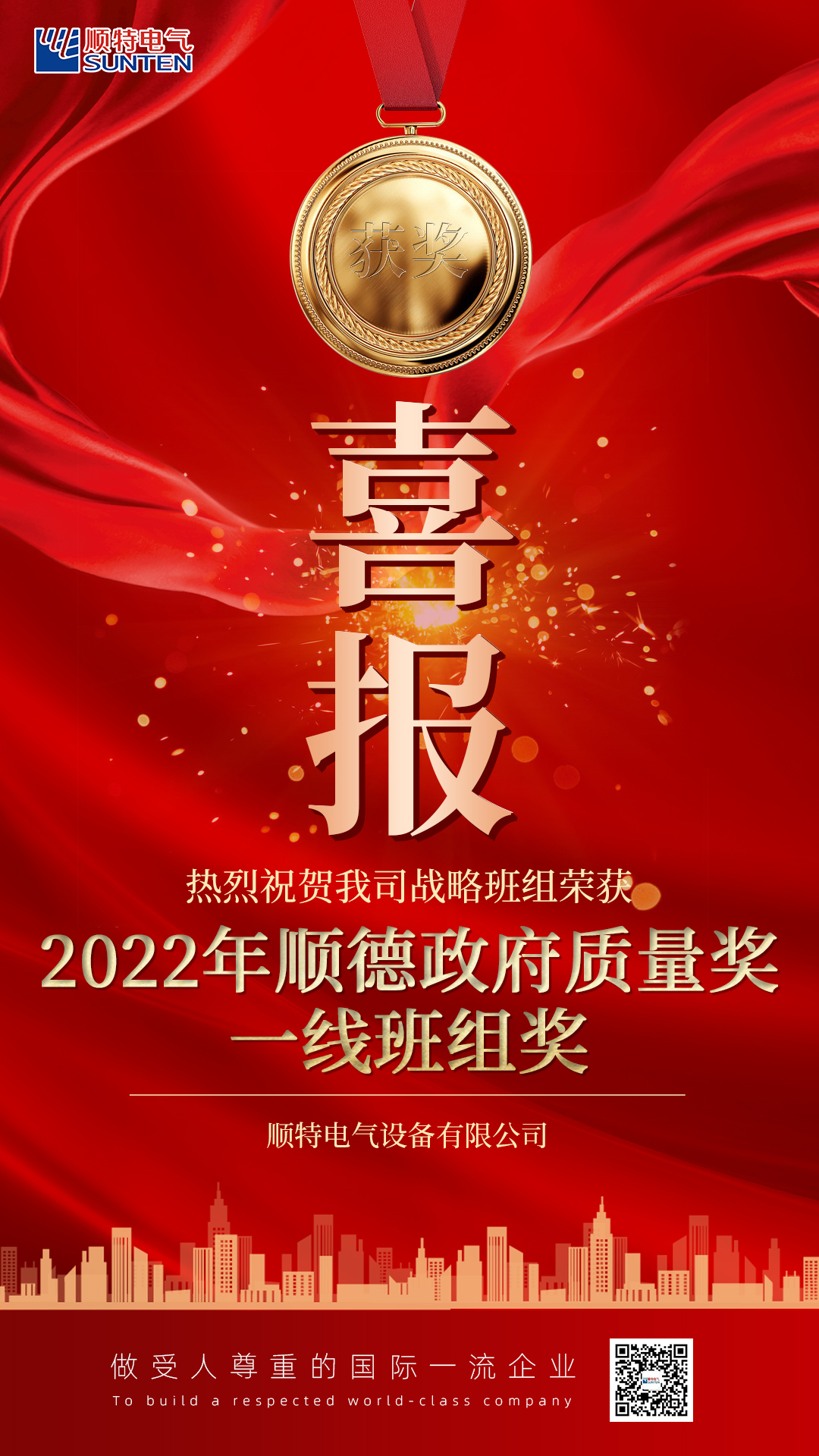 喜報!我司戰(zhàn)略班組榮獲“2022年順德政府質(zhì)量獎一線班組獎”