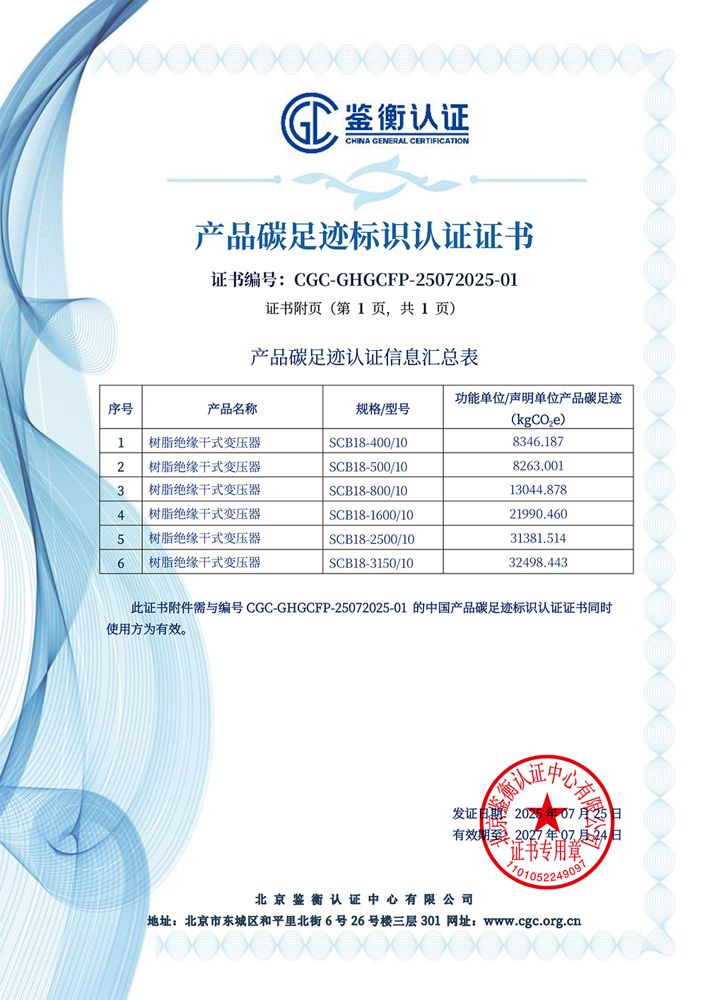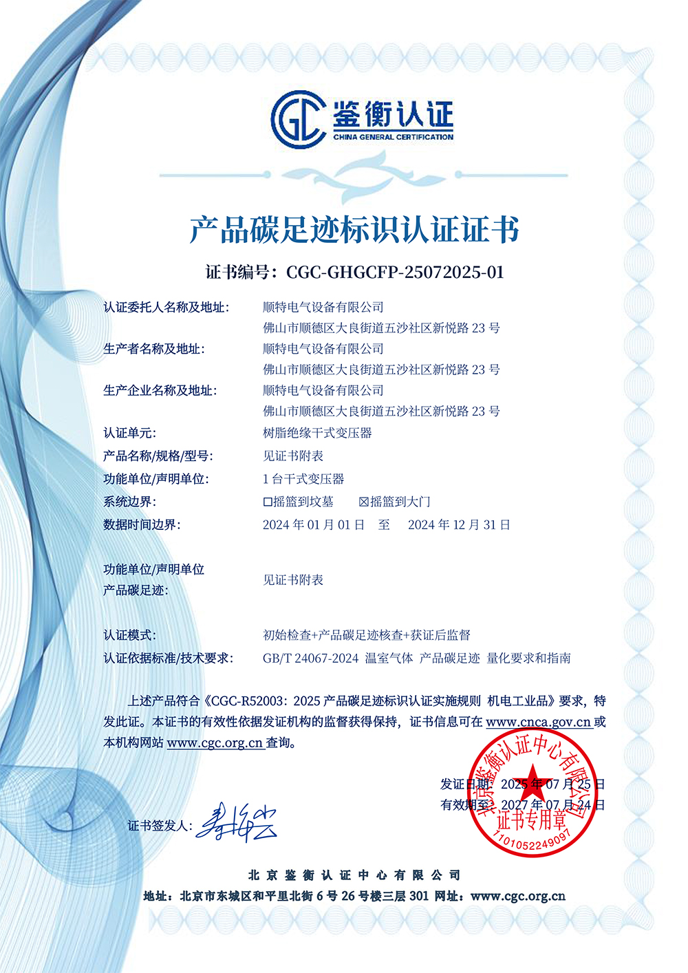 順特電氣設備有限公司取得產(chǎn)品碳足跡證書